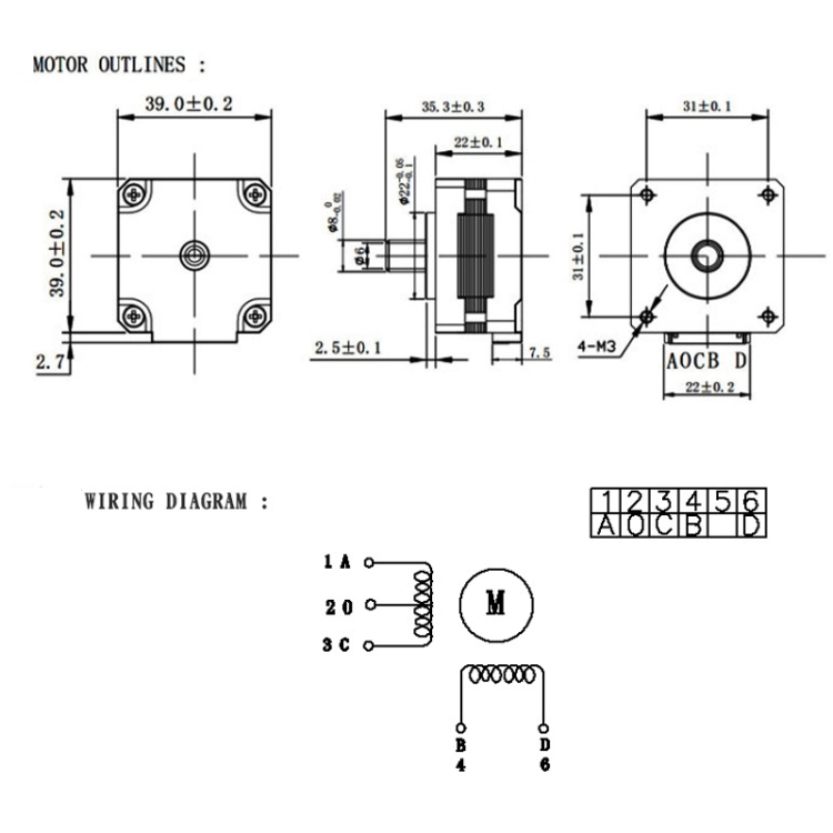 HANPOSE 39HGA525-13K 0.8A 0.2NM Induction Light Stepper Motor