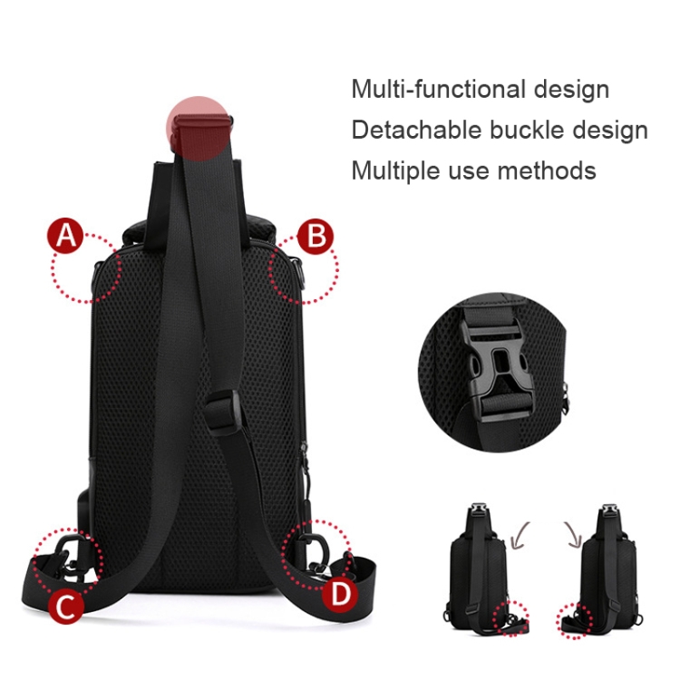HAOSHUAI 1100-17 Men Chest Bag Casual Shoulder Bag USB Charging Chest Bag