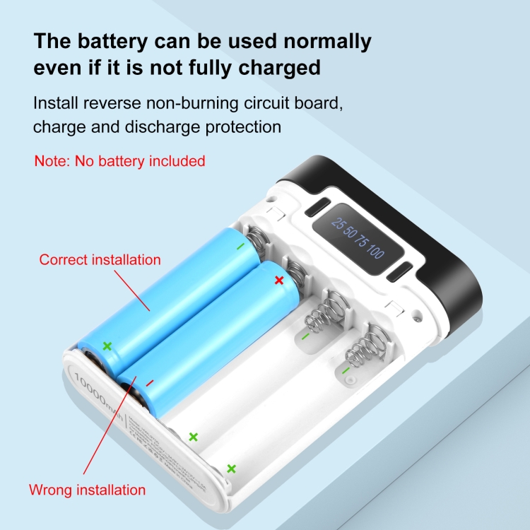 2. The 18650 battery with pointed tip and flat tip can be used normally, and the internal battery can be replaced quickly. The mobile power box can be reused and has a long service life;