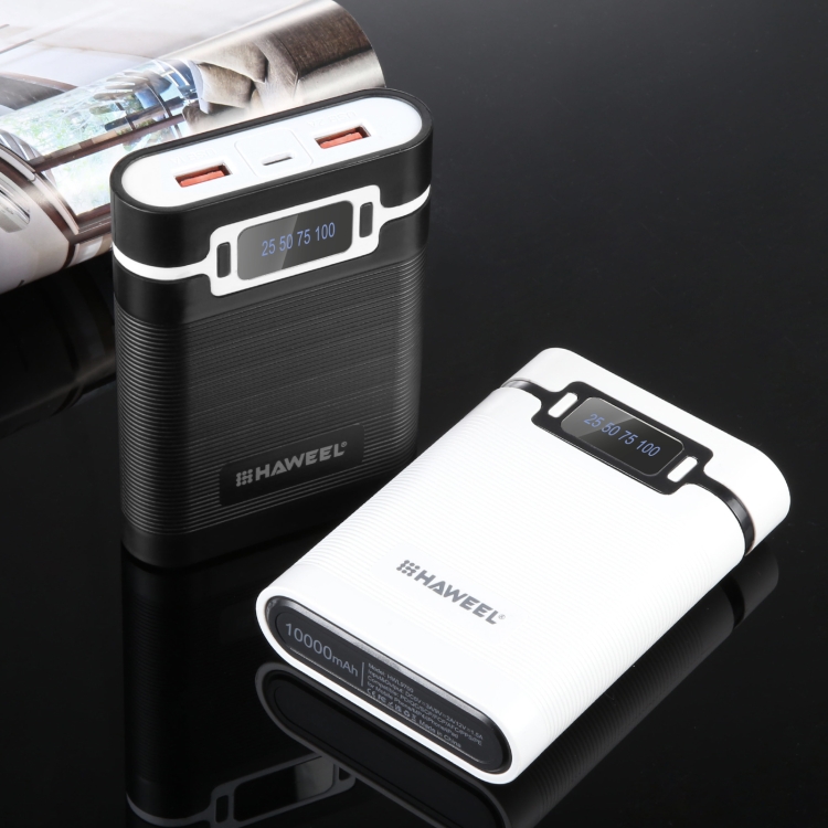 HAWEEL DIY 4x 18650 Battery (Not Included) 10000mAh Dual-way QC Charger Power Bank Shell Box with 2x USB Output & Display, Support PD / QC / SCP / FCP / AFC / PPS / PE