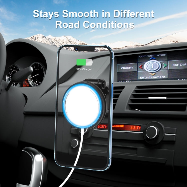 2. Single-handed Installation: Simply place Magsafe Car Mount Charger inside the car mount, you get a wireless charger and car mount, with features coming from the charger itself: Get in and go without stopping to mount your phone.