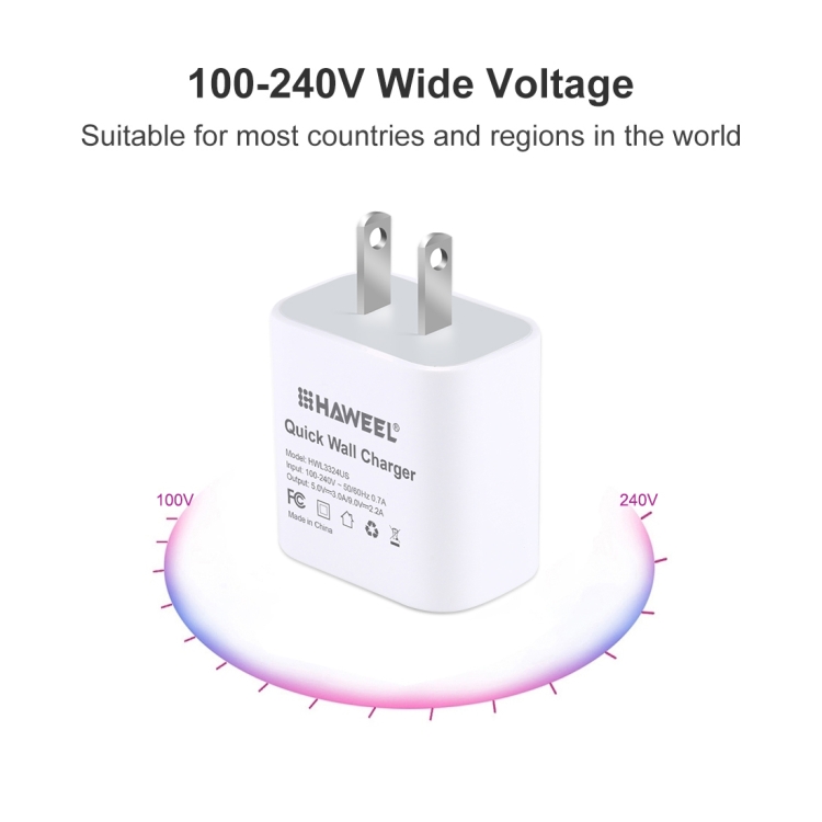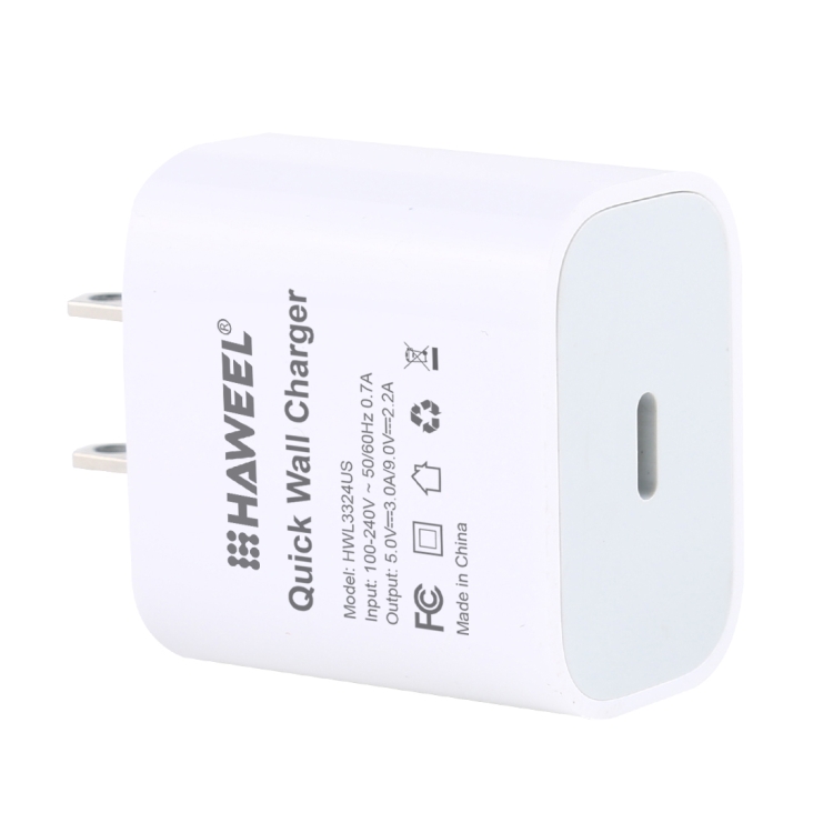 HAWEEL PD 20W Single USB-C / Type-C Interface QC Travel Charger, Support Full QC Protocol, US Plug