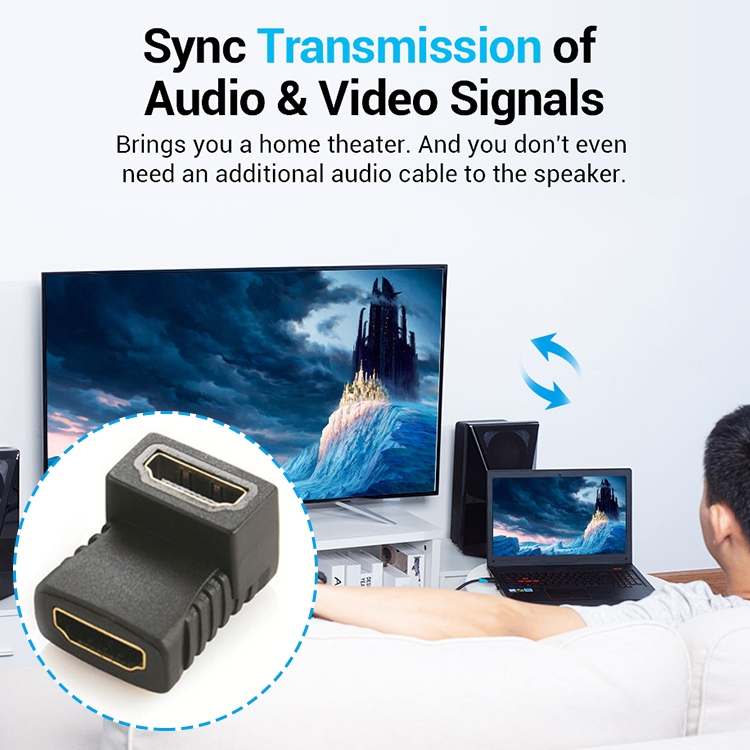 HDMI Angle Coupler (Female to Female) – 90 Degree (Gold Plated)