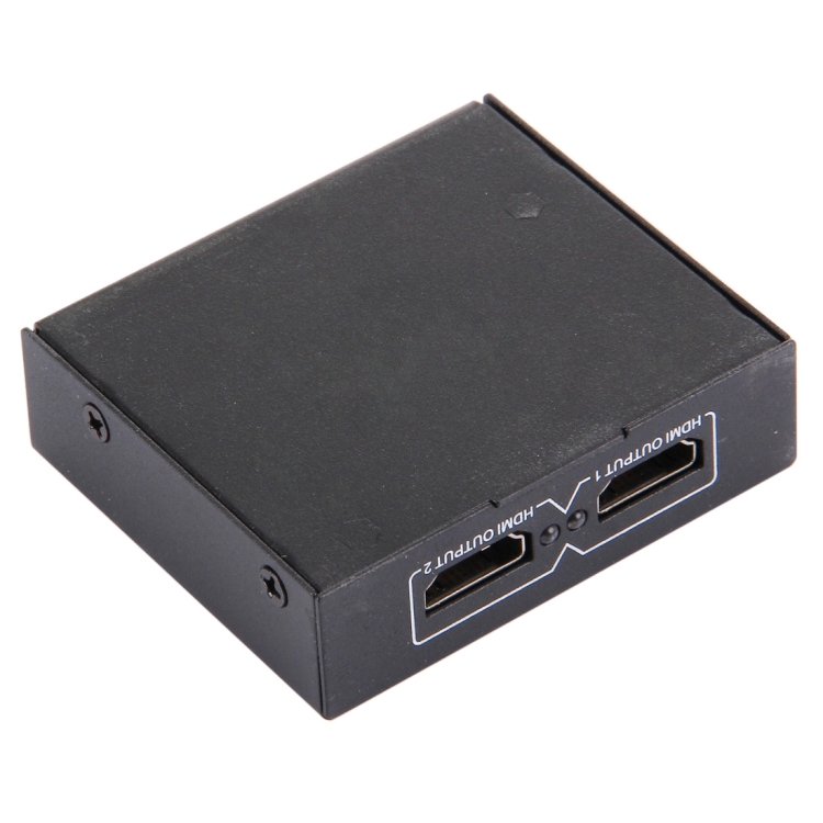1×2 HDMI Splitter distributes 1 HDMI source to 2 HDMI displays simultaneously. It offers HD video solution for super market, shopping Mall, HDTV / STB/ DVD / Projector / DVR factory, data control center, information distribution, conference room presentation, education and training, corporation showroom, luxurious house, etc..