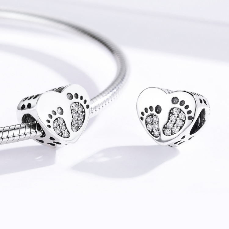 Heart-shaped Footprint Beaded S925 Sterling Silver Loose Beads DIY Bracelet Silver Beads