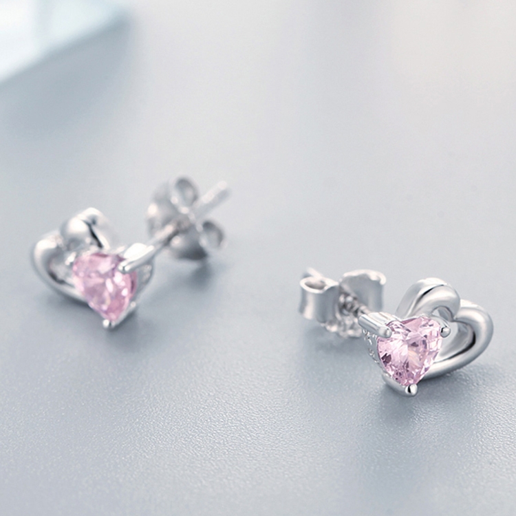 Heart-shaped S925 Sterling Silver Earrings with Gemstones