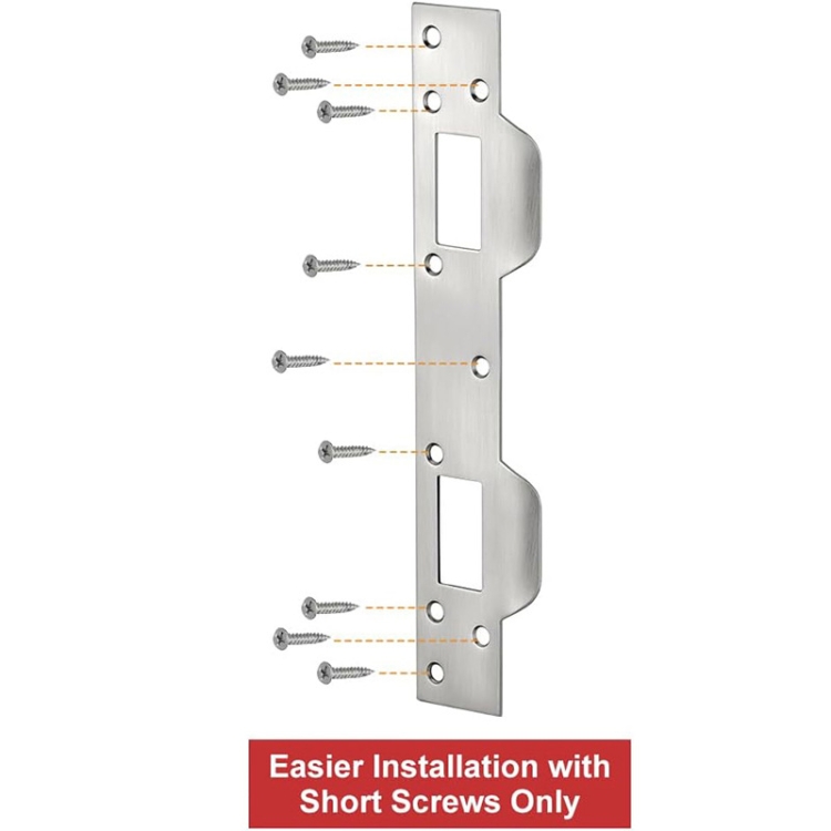 3. Repair broken door frames: One-piece design to replace the standard independent latch plate. It can hide defects or broken areas in the door frame. It solves the problem that the door handle latch and deadbolt cannot be stuck. The size of the hole is large enough to allow seasonal ground movement and keep the latch working properly.