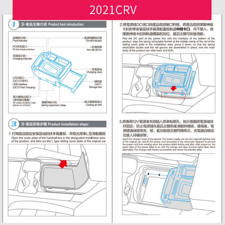 HFC-1003-01 Car Qi Standard Wireless Charger 10W Quick Charging for Honda CR-V 2017-2022, Left and Right Driving