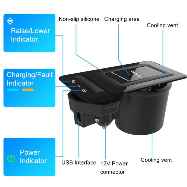 HFC-1052 Car Qi Standard Wireless Charger 15W / 10W Quick Charging for Audi A6L 2019-2022, Left Driving