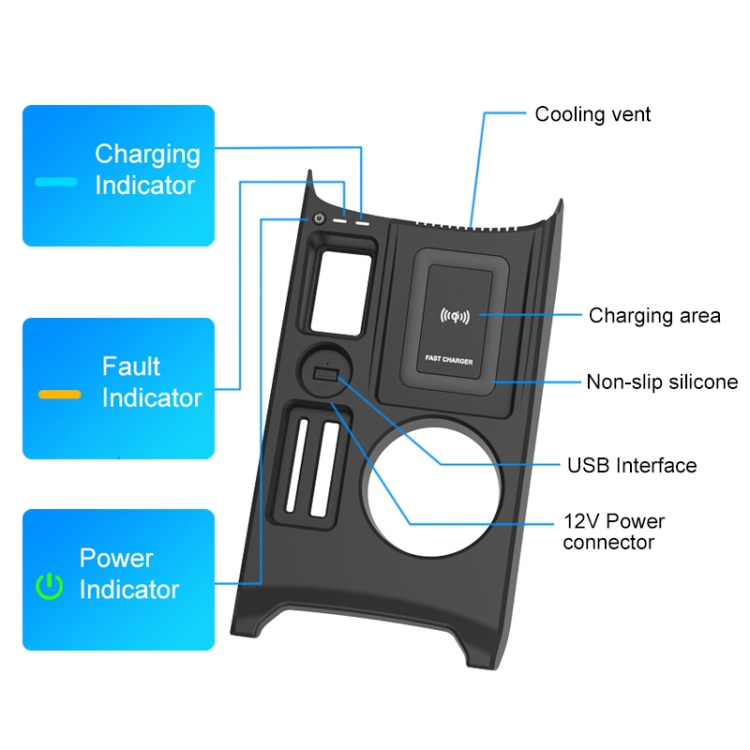 HFC-1053 Car Qi Standard Wireless Charger 15W / 10W Quick Charging for Audi A3 2021-2022, Left Driving