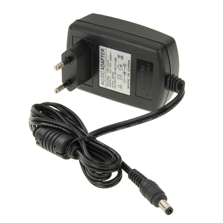 High Quality EU Plug AC 100-240V to DC 9V 2A Power Adapter, Tips: 5.5 x 2.1mm, Cable Length: 1m