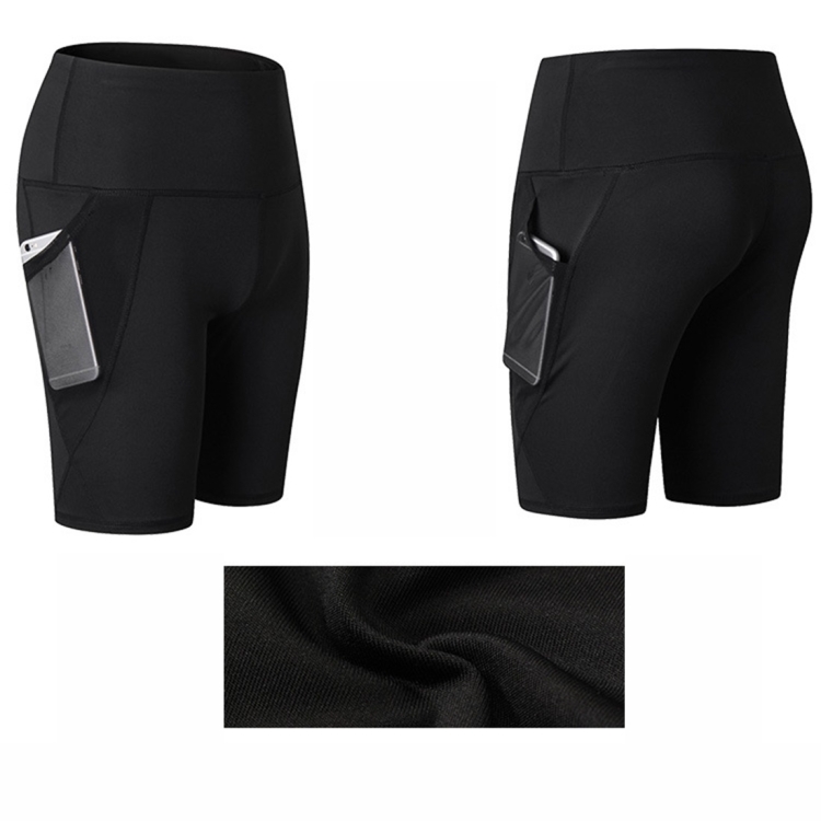 High Waist Mesh Sports Tight Elastic Quick Drying Fitness Shorts With Pocket (Color:Rose Red Size:S)