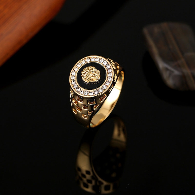 1. Cool fashion rhinestone detailed lion head medallion ring for men.