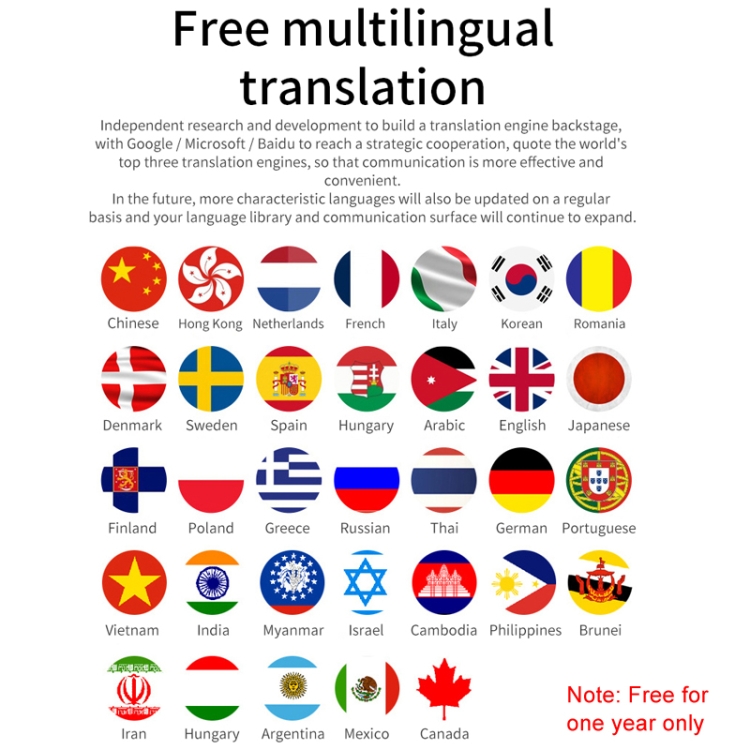 7. Supported languages: Chinese, Hong Kong, Netherlands, French, Italy, Korean, Romania, Denmark, Sweden, Spain, Hungary, Russian, Arabic, English, Japanese, Finland, Poland, Greece, Thai, German, Portugal, Vietnam, India, Myanmar, Israel, Cambodia, Philippines, Brunei, Iran, Hungary, Argentina, Mexico, Canada, etc.