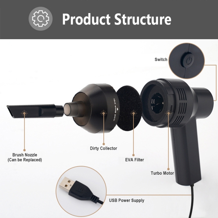HK-6019D Portable Household Car Handheld Mini USB Vacuum Cleaner Dust Collector Cleaning Tools
