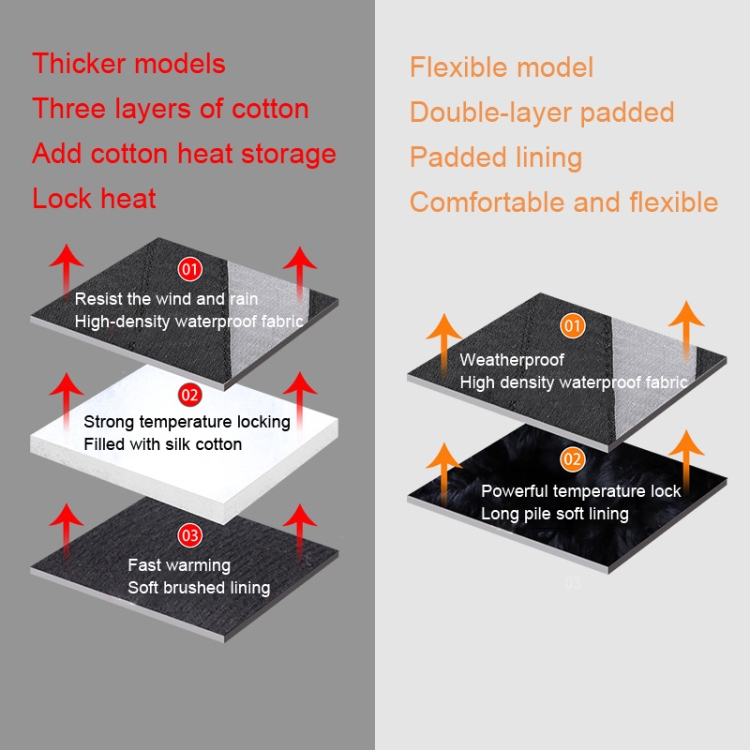 2. Thickened models of three-layer cotton, filled with silk cotton, rapid warming, soft brushed lining