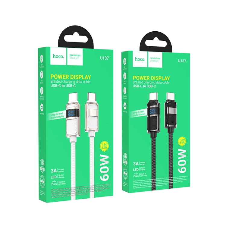 hoco U137 USB-C / Type-C to USB-C / Type-C Line 60W Charging Data Cable with Display