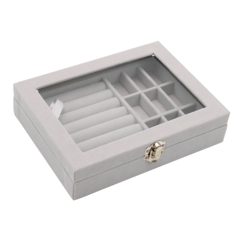 Home Glass Lid Flannel Storage Jewelry Box With Lid