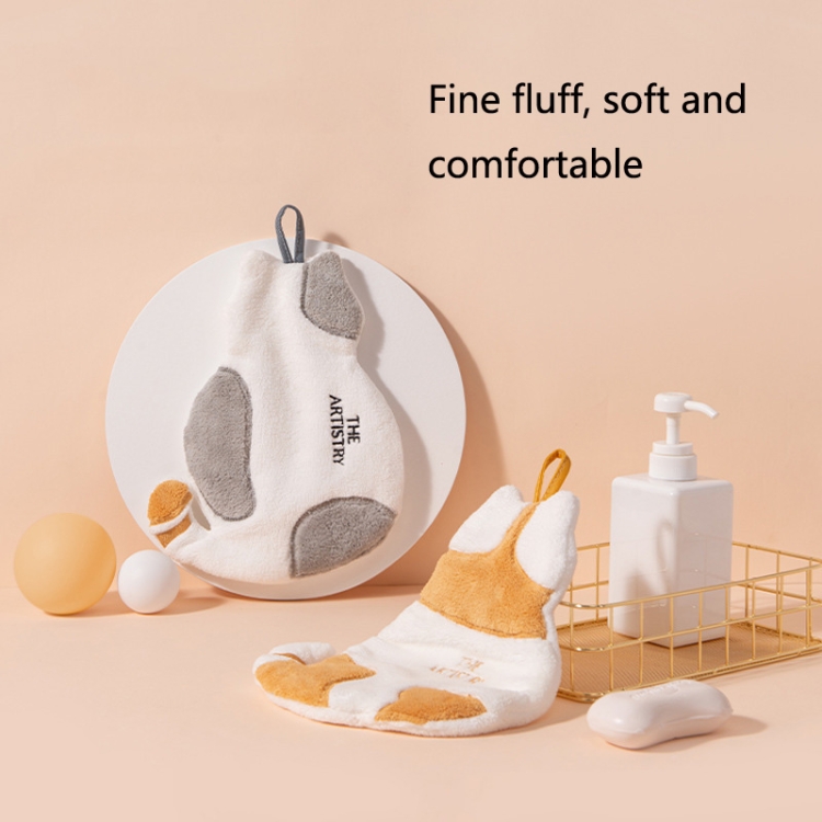 Home Kitchen Bathroom Cute Cat Hand Towel, Yellow, Grey