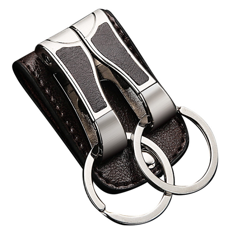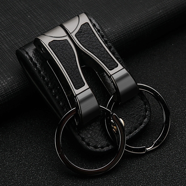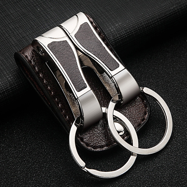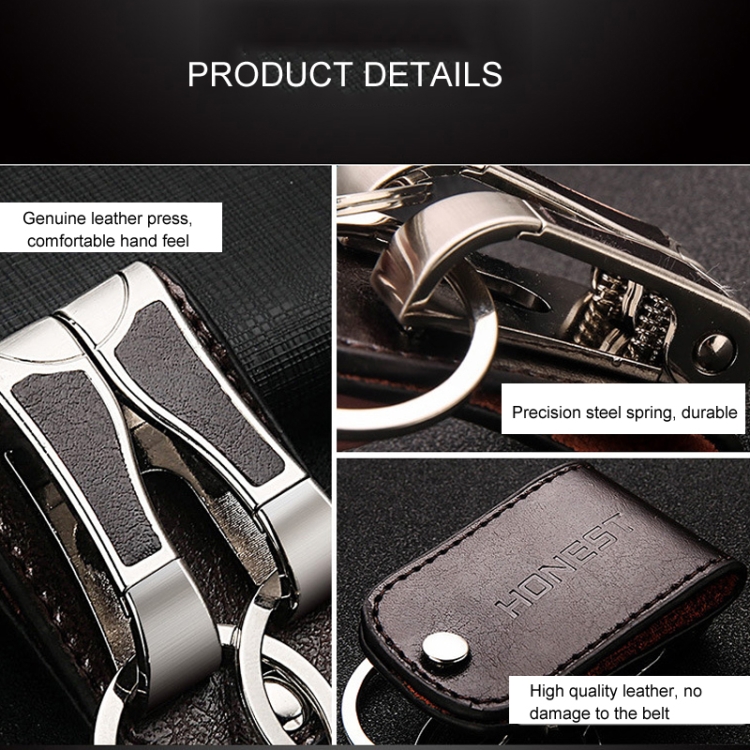 HONEST Cowhide Double Ring Keychain Waist Hanging Car Key Pendant