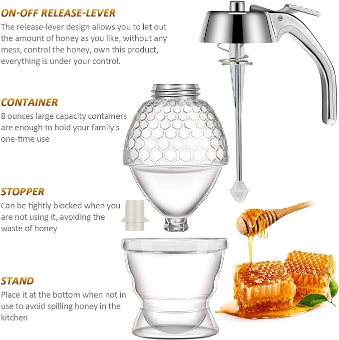 - HOW IT WORKS: Simply remove the stopper on the bottom of the container, Press on the trigger, and honey immediately dispenses.