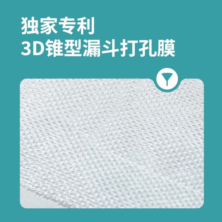 2. 3D cone-shaped funnel perforated membrane, can quickly divert liquid, expand the suction surface