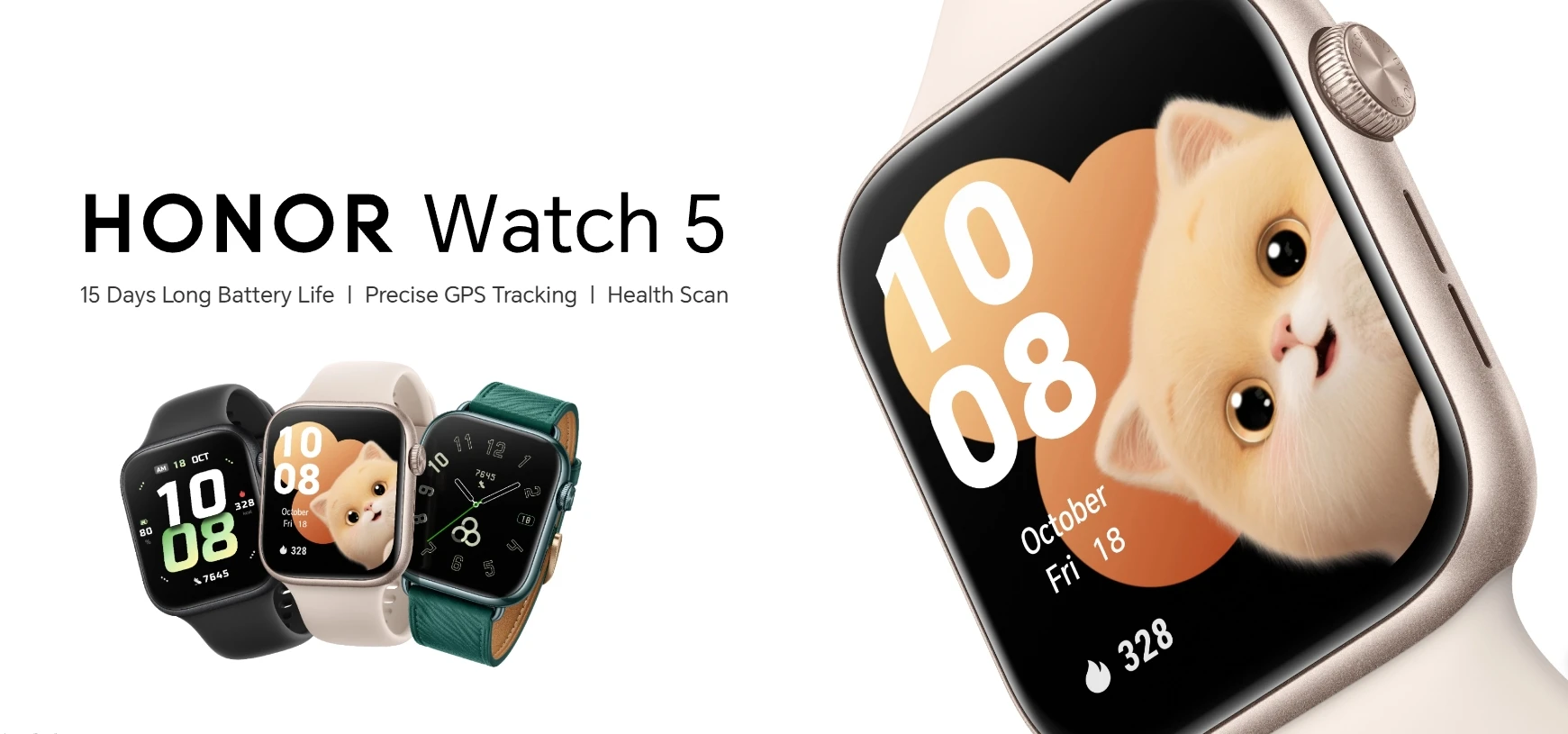 HONOR Watch 5 Smartwatch GPS Blood Oxygen Monitor 1.85 Inches 60Hz AMOLED Display 15 Days Battery Life