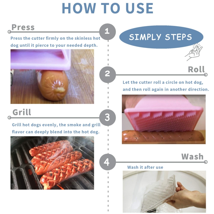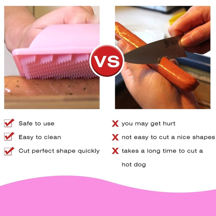 3. Made of plastic material, easy to clean and not hurt your hands. The shell is very hard and durable, and the 15 rows of sharp blades can cut hot dogs with ease.