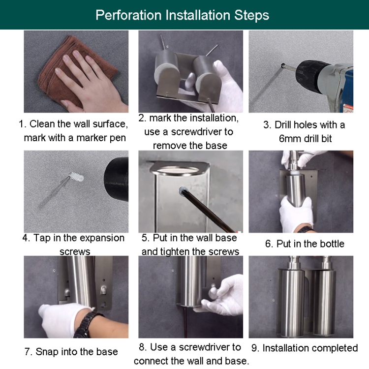 Hotel Stainless Steel Soap Dispenser Home Wall Mounted No Punch Press To Soap Bottle