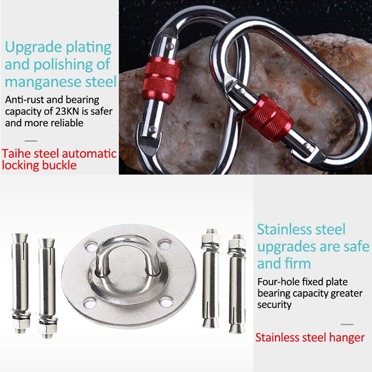 8. Products include 5 meter hammock cloth + 2 tai-alloy locks + 2 stainless steel hangers + 2 rock climbing grade extension belts.
