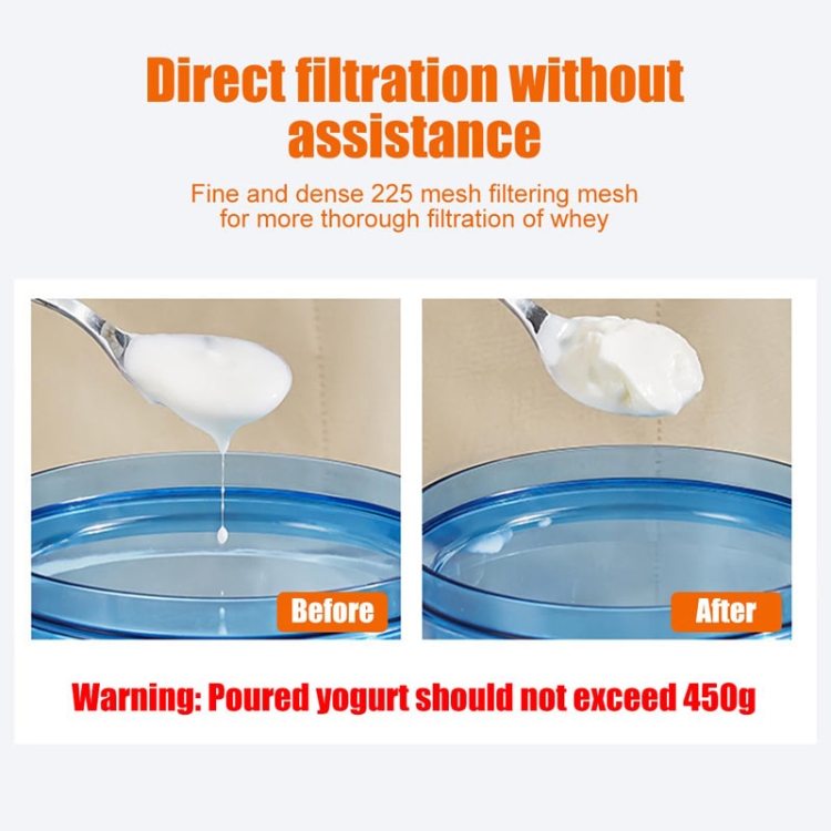 7. How to use: just pour the yogurt into the strainer, cover it and put it into the refrigerator, then you can get the mellow yogurt (the yogurt you pour in can not be more than 450g)