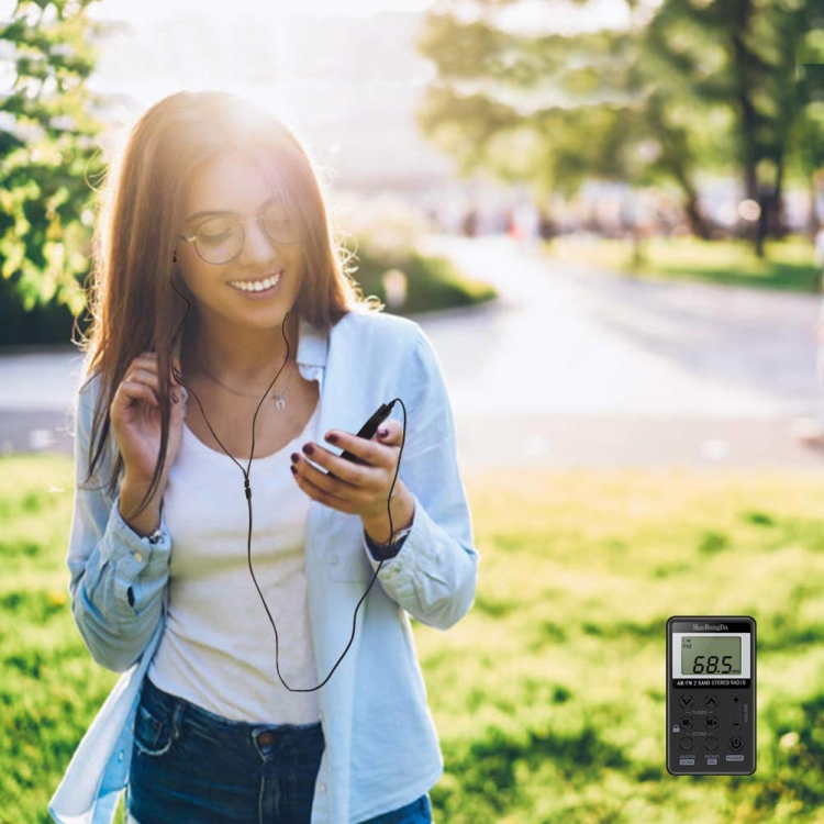 HRD-103 FM + AM Two Band Portable Radio with Lanyard & Headset