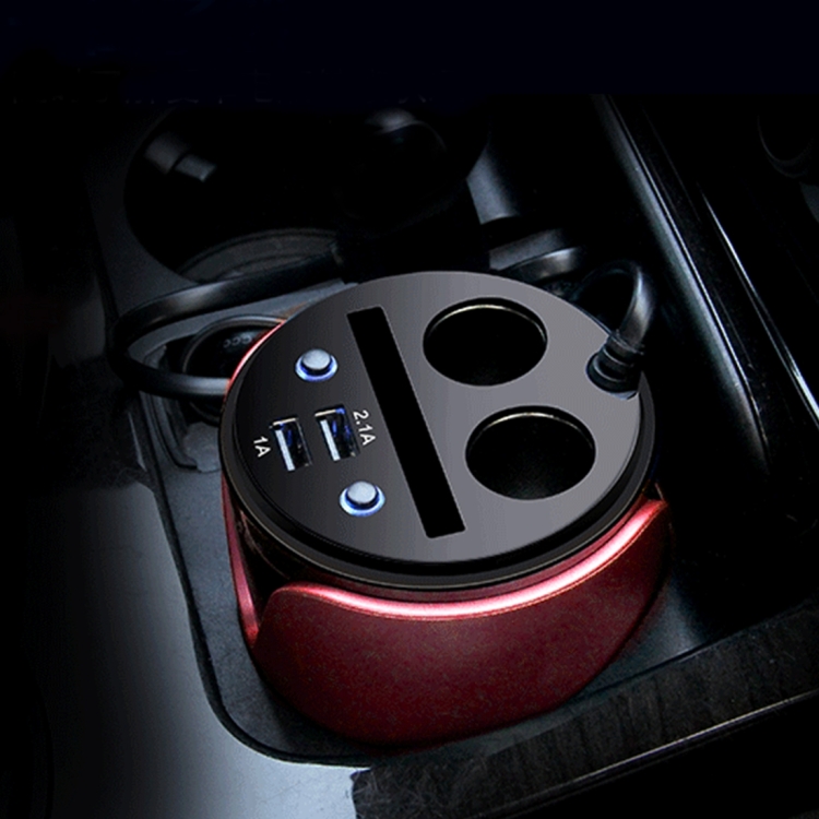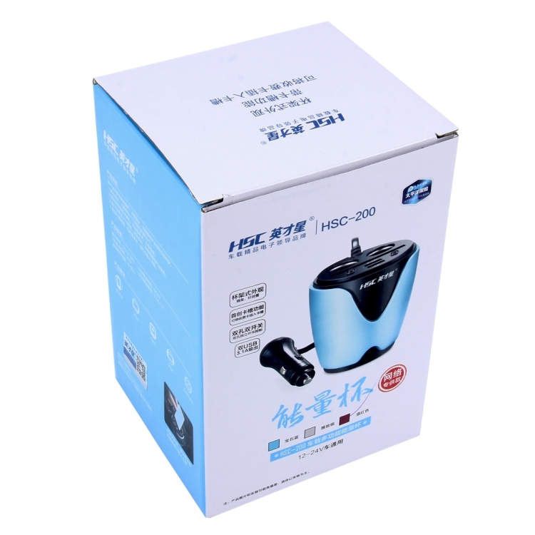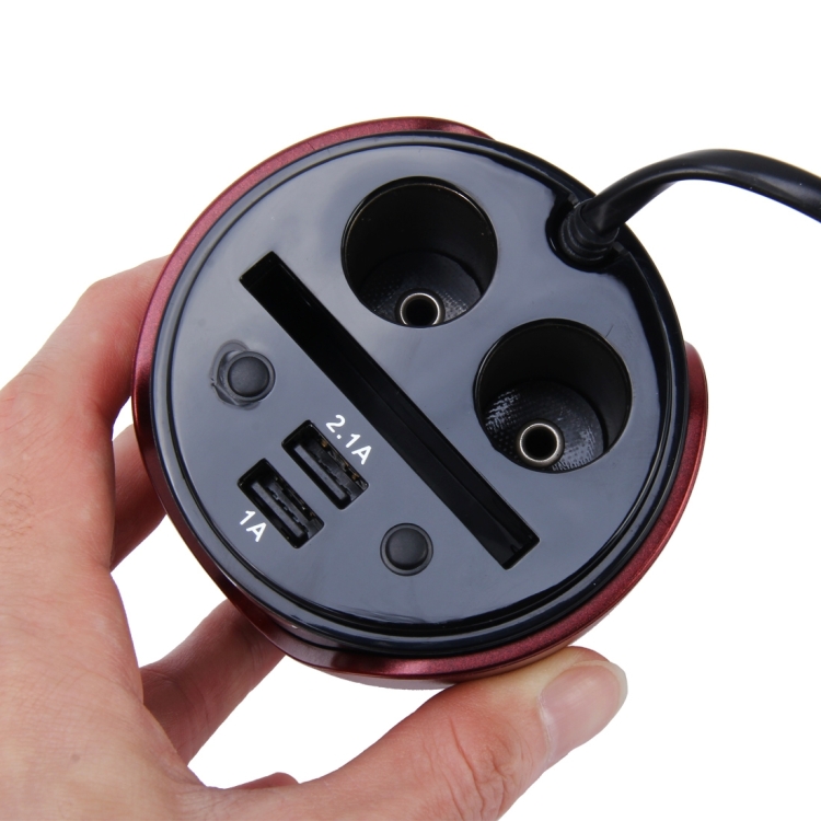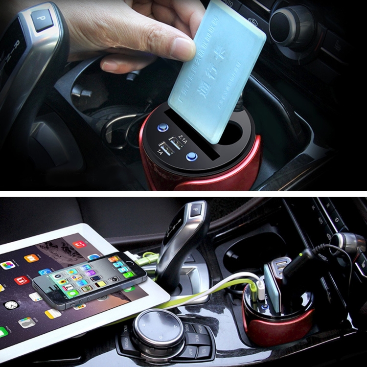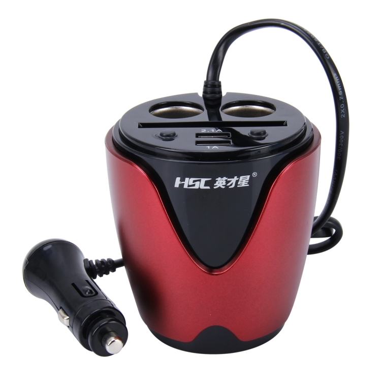 HSC YC-19 Car Cup Charger 2.1A/1A Dual USB Ports Car 12V-24V Charger with 2-Socket Cigarette and Card Socket