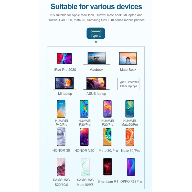 3. Suitable for laptops/mobile phones/tablets with USB-C ports