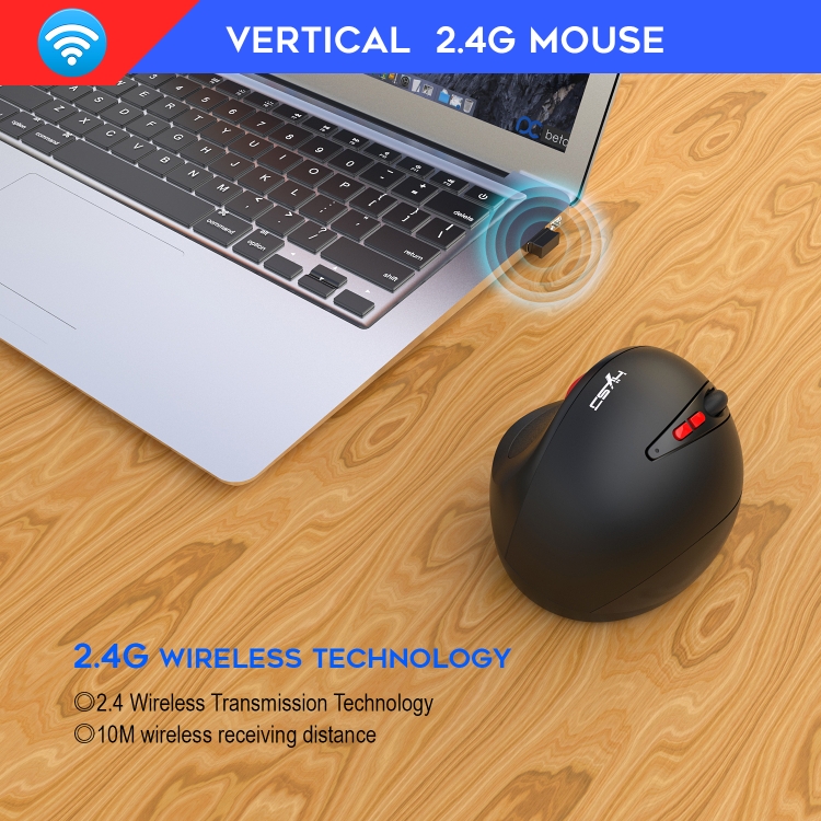 HXSJ T31 2.4GHz 2400DPI Three-speed Adjustable 7-keys Rechargeable Vertical Wireless Optical Mouse