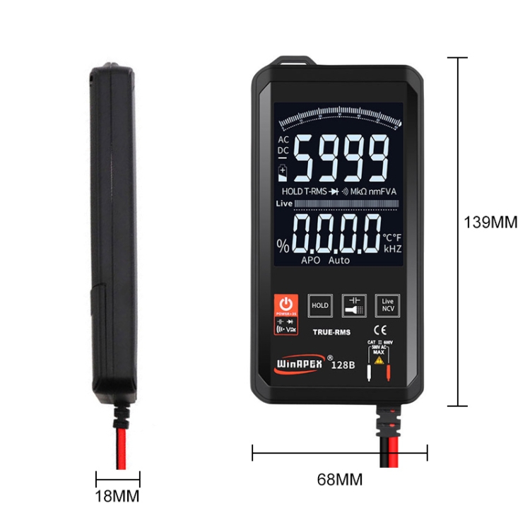 HY128B Reverse Display Screen Ultra-thin Touch Smart Digital Multimeter Fully Automatic High Precision True Effective Value Multimeter
