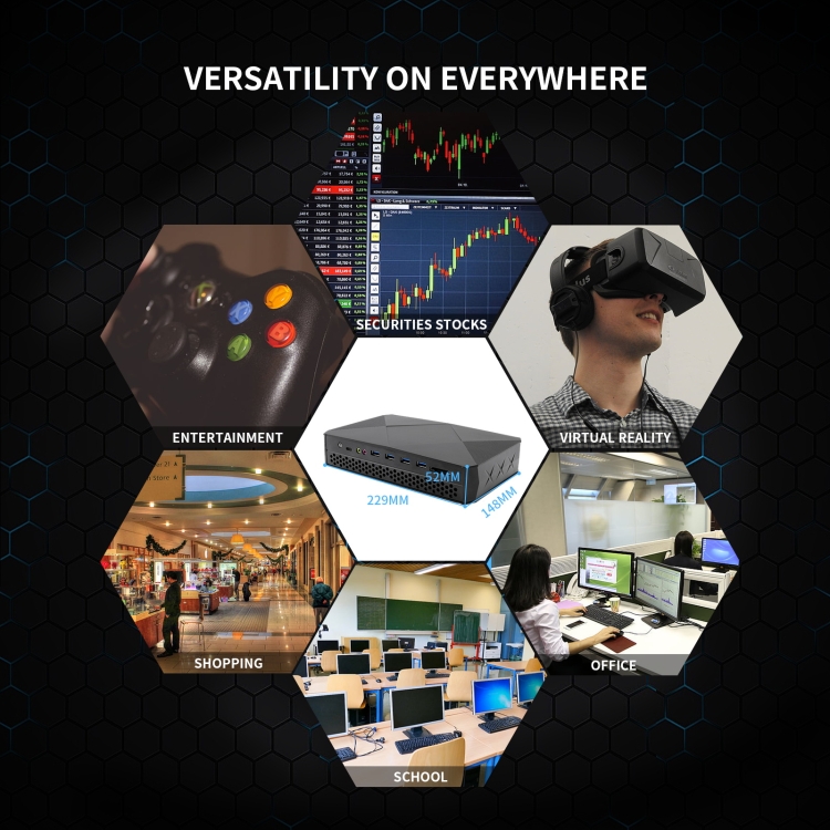 7. In & Out interfaces: 4xUSB3.0 port, 4xUSB2.0 port, 1xtype-c port, 3.5mm, power in port, 2xRJ45 LAN ports