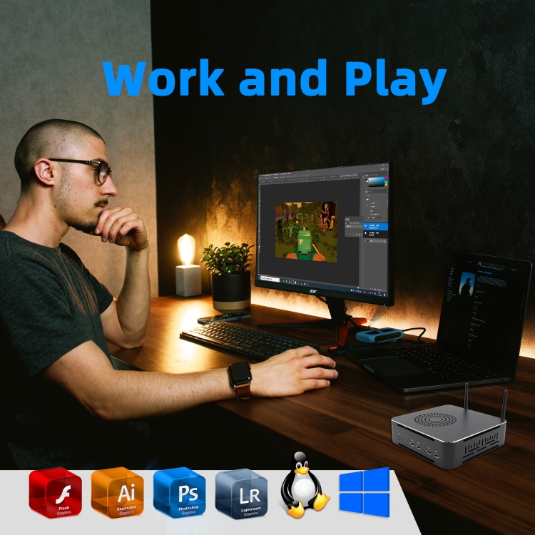 HYSTOU M7 Windows 7/8/10 / Linux System Mini PC, Intel Core G6400 Dual Core 4 Threads up to 4.0GHz, 32GB RAM+1TB SSD, US Plug