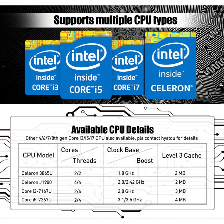 HYSTOU P09-6L Windows / Linux System Mini PC, Intel Celeron 3865U 2 Core 2 Threads up to 1.80GHz, Support mSATA, 4GB RAM DDR3 + 128GB SSD