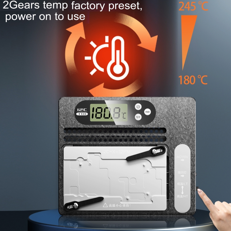 9. LCD HD screen display, 2Gears of temp adjustment, for iPhone X to 15Pro Max motherboard separation, chip CPU glue removal, and other functions