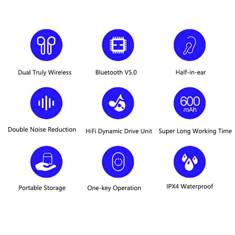 After receiving the goods, take out the earphones, the earphones will automatically turn on; the left ear flashes blue light every 5 seconds, and the right ear red and blue lights alternately flash.