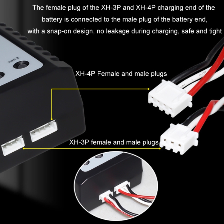 4. The XH-3P and XH-4P charging end female plugs connected to the battery end male plug are connected with a snap-on design, which ensures no leakage when charging and is safe and tight.