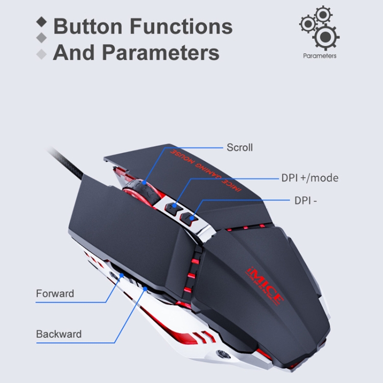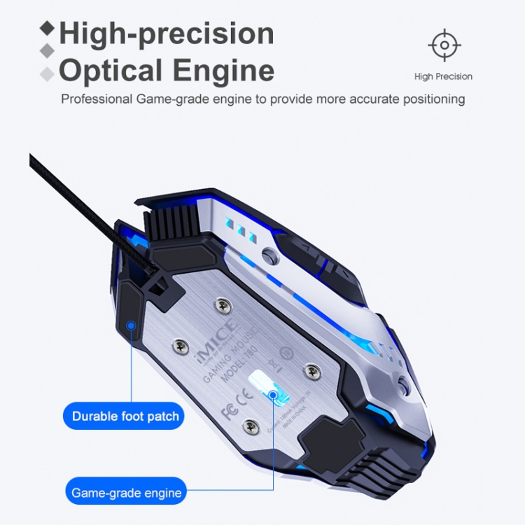 iMICE T80 7 Keys 3200 DPI Macro Programming Mechanical Gaming Wired Mouse, Cable Length: 1.8m