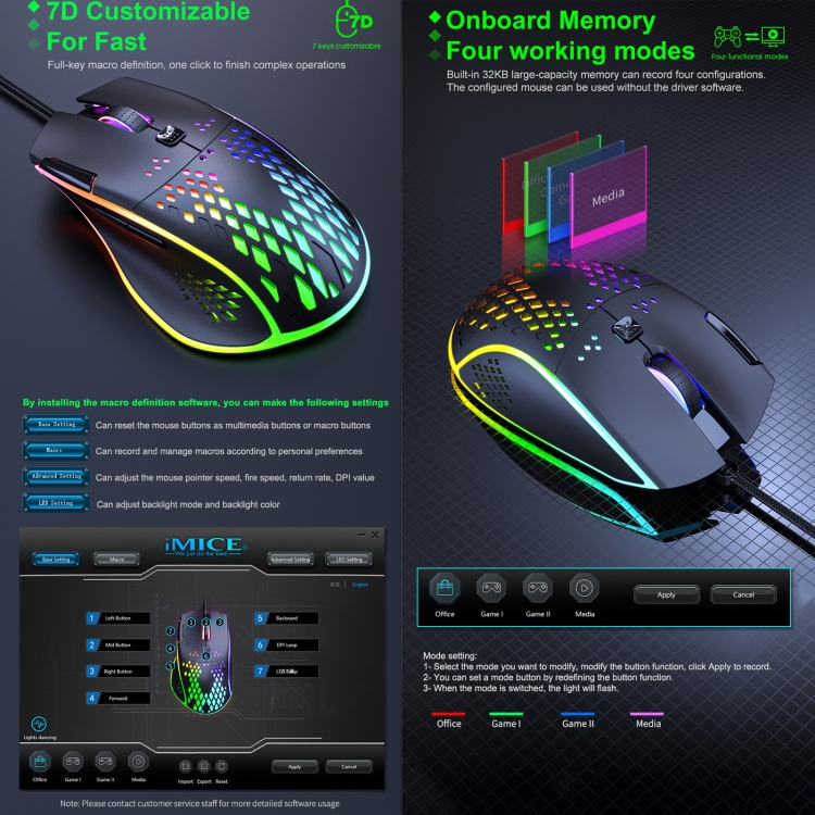 iMICE T97 Gaming Mouse RGB LED Light USB 7 Buttons 7200 DPI Wired Gaming Mouse
