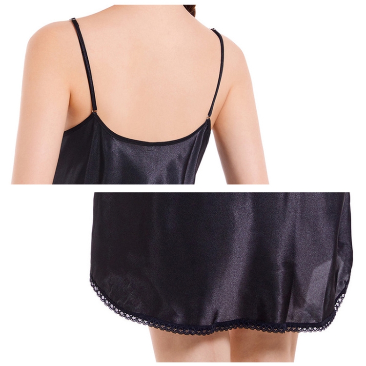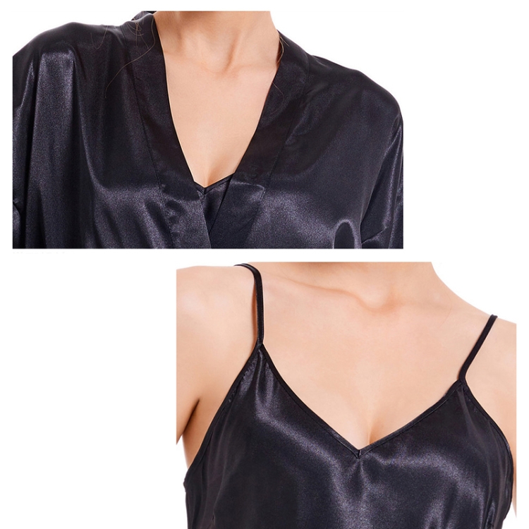 Imitation Silk Pure Color Sexy V-neck Nightgown Sling Skirt 2 in 1 Kit