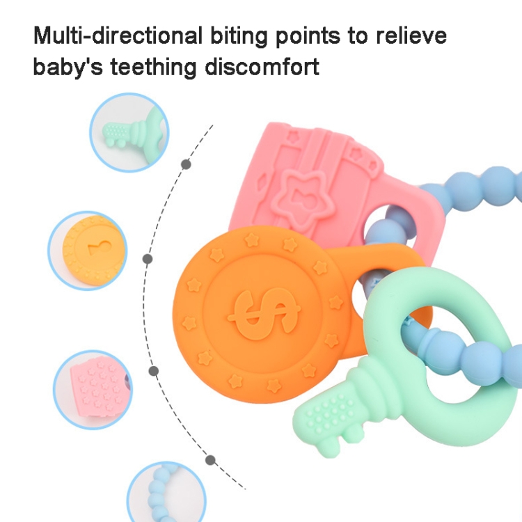 Infant Baby Teether Comfort Anti-eating Hand Bracelet Key Shape Molar Silicone Toy