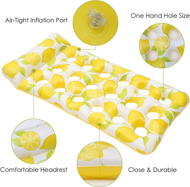 Inflatable Lemon Float Row Hole Water Bed Lounge Chair
