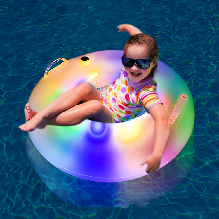 1. LED inflatable swimming ring: It is equipped with LED lights, colored LED beads and one-key switch inside. It has constant and flashing modes. When you turn on the switch at night, it will light up the swimming pool for you and make you quickly become the focus of the summer swimming pool.