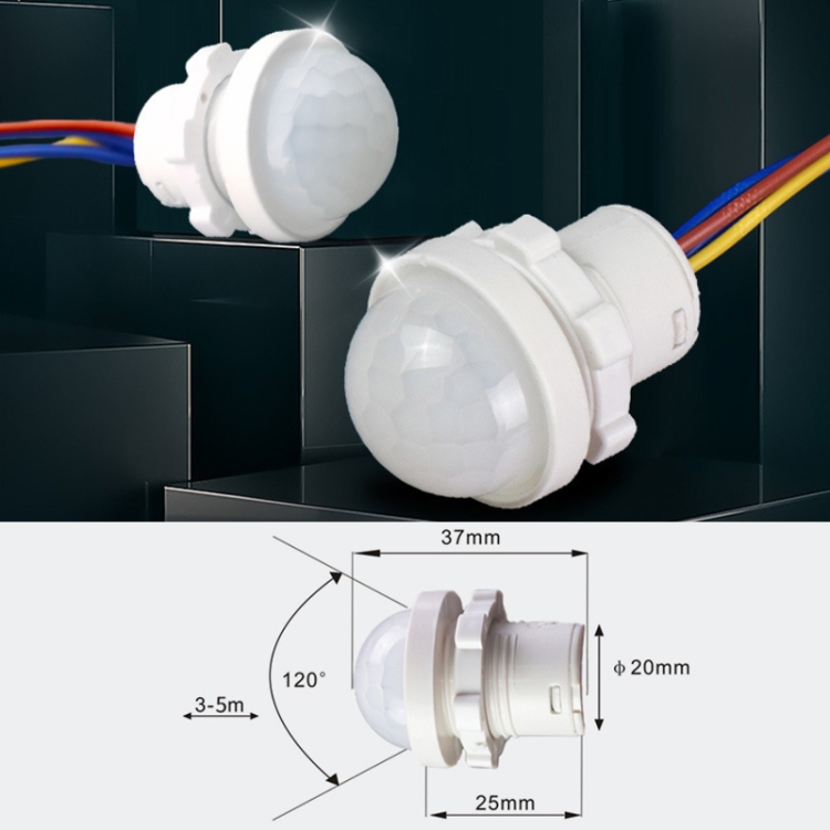 5. DC12-24V human body infrared sensor switch (low voltage model): 25x19mm, recommended opening 24.9mm, DC9V-60V, can load 18W, 180-260mA