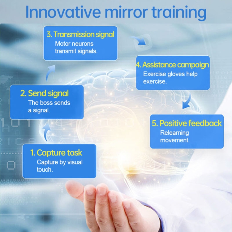 1. Mirror image finger training; the use of mirror image principle, so that the healthy side of the hand flexion and extension to drive the other side of the action, through continuous imitation as well as re-learning, in order to achieve the promotion of rehabilitation training